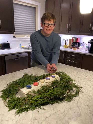 The banner is a beautiful addition to our church, honours the Virgin Mary using images long connected to her role in our faith, and a loving testimony to our Mary and all she means to us.